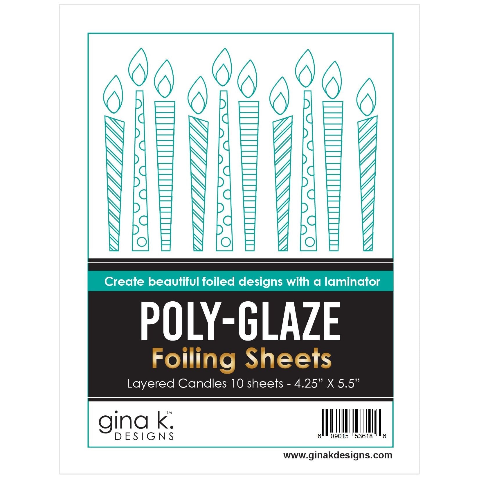 Elevate your paper crafting projects with Gina K Designs Layered Candles Poly-Glaze Foiling Sheets. The Poly-Glaze coating ensures smooth application of Deco-foil without any black spots or dropouts. No expensive equipment necessary, just use your household laminator for stunning results. set of 10 sheets in one pattern. Each are 4.25 x 5.5 inches.