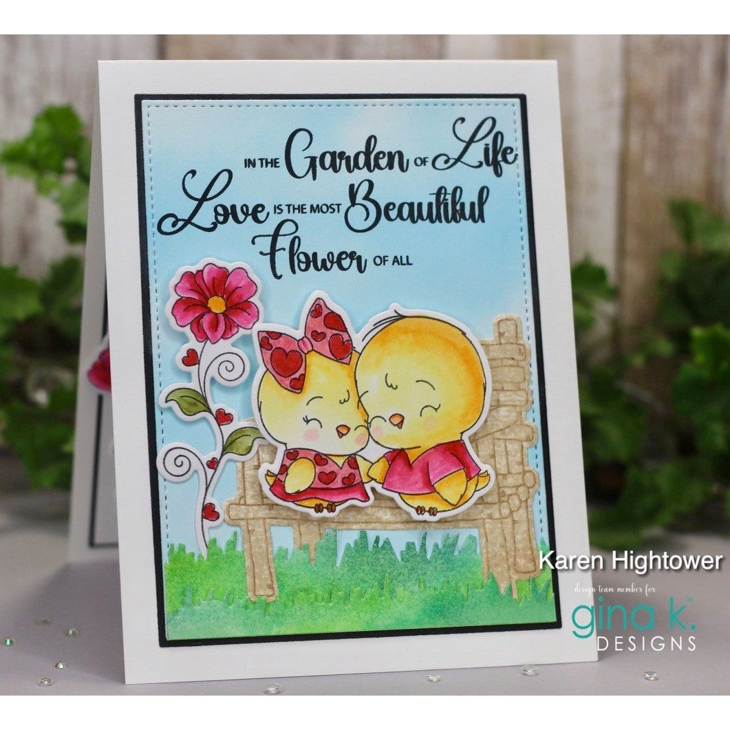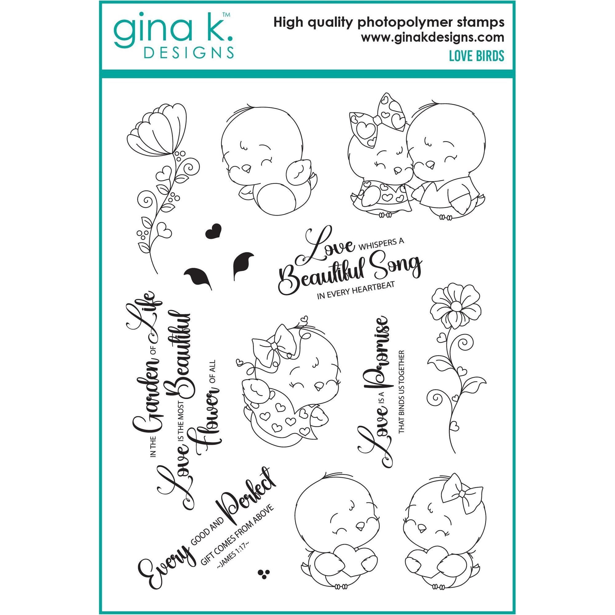 Indulge in the ultimate creative experience with Gina K Designs Love Birds Stamps. Fall in love with the intricate 15-piece 6x8 inch set, featuring charming snuggling birds, flying birds, and delicate flowers, all adorned with beautiful scripture and sentiments. Create heartfelt designs with ease and add a touch of love to every project. Sentiments and scripture included: