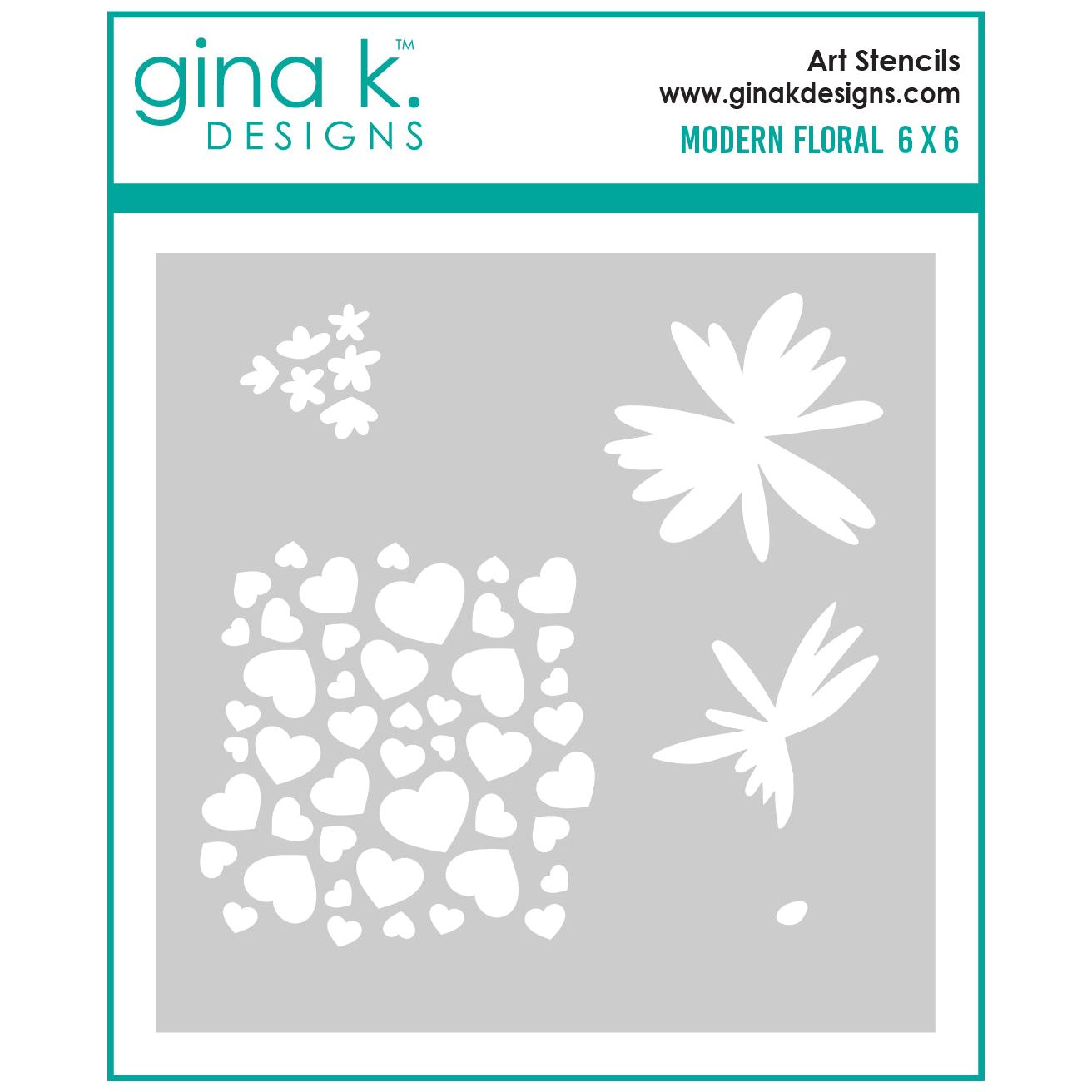 Enhance your paper crafting with the Gina K Designs Modern Floral Stencil. Designed to perfectly complement the Modern Floral stamp set, this stencil allows for easy layering of color and texture. Use with the flower bloom, multi-sized heart background, and small floral cluster pieces for beautiful results. Stencil measures 6x6 inches.