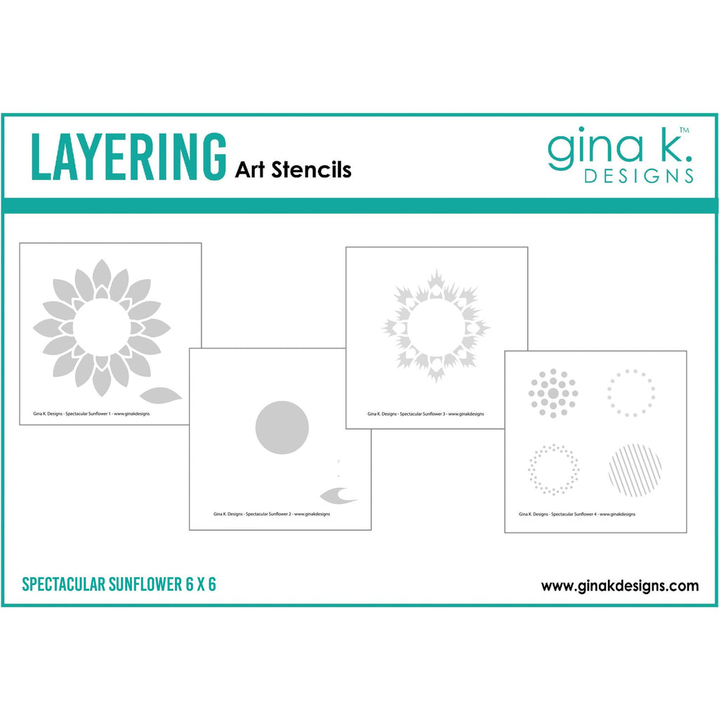 Get creative with this set of four Gina K Designs Spectacular Sunflowers Layering Stencils set. Each 6x6 inch stencil allows you to layer in color and texture to create realistic-looking sunflowers with ease. Get your creative juices flowing with this unique crafting tool.