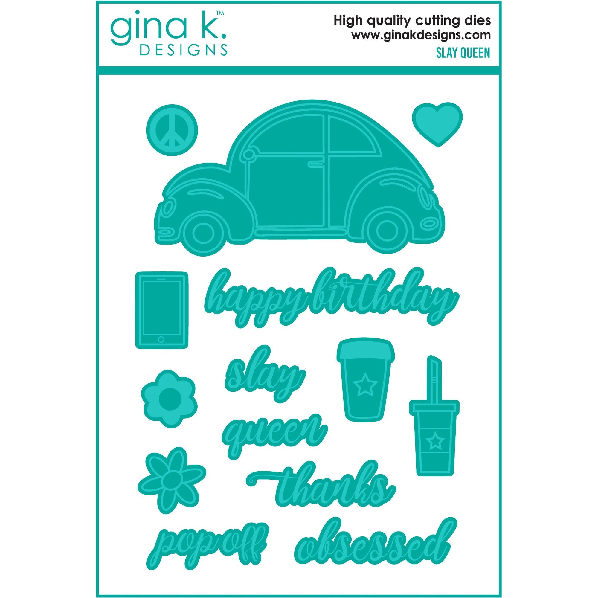 Enhance your crafting with ease! Gina K Designs' Slay Queen Coordinating Dies is a must-have for perfect results. Designed to flawlessly coordinate with the Slay Queen clear stamp set, this set contains dies for every stamp included, ensuring accurate and professional cuts every time. For approximate dimensions, please refer to coordinating stamp set.