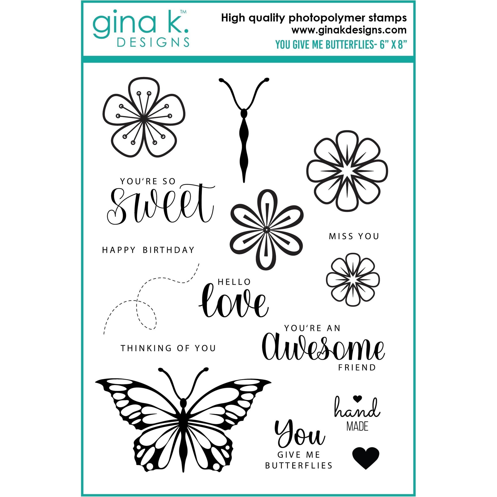 Express yourself with this clear stamp set featuring a butterfly, 4 flowers, a butterfly trail, two hearts, and several sentiments in mixed fonts. Perfect for creating vivid, beautiful cards and projects, these stamps will help you show off your unique style.
