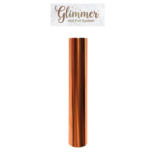 Glimmer Hot Foil Roll Copper color comes in a 15 foot roll (five-inch width).