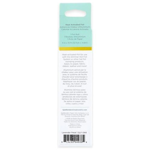 Glimmer Hot Foil Roll Lavender Petal comes in a 15-foot roll and a width of five-inches.