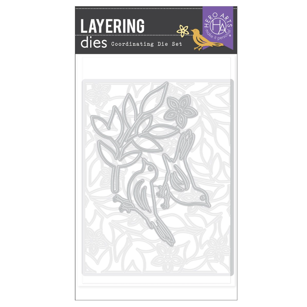 The Hero Arts Branches & Blossoms Die Set from the Blossoms & Birdsong Collection adds a beautifully detailed leafy background to your projects. This set of 5 dies includes a full A2-sized floral background, plus a sprig, a flower, and two birds—perfect for creating stunning layered designs. Use the elements individually or combine them for added dimension and impact. Ideal for cardmaking and mixed media, these high-quality dies deliver crisp, clean cuts every time.
