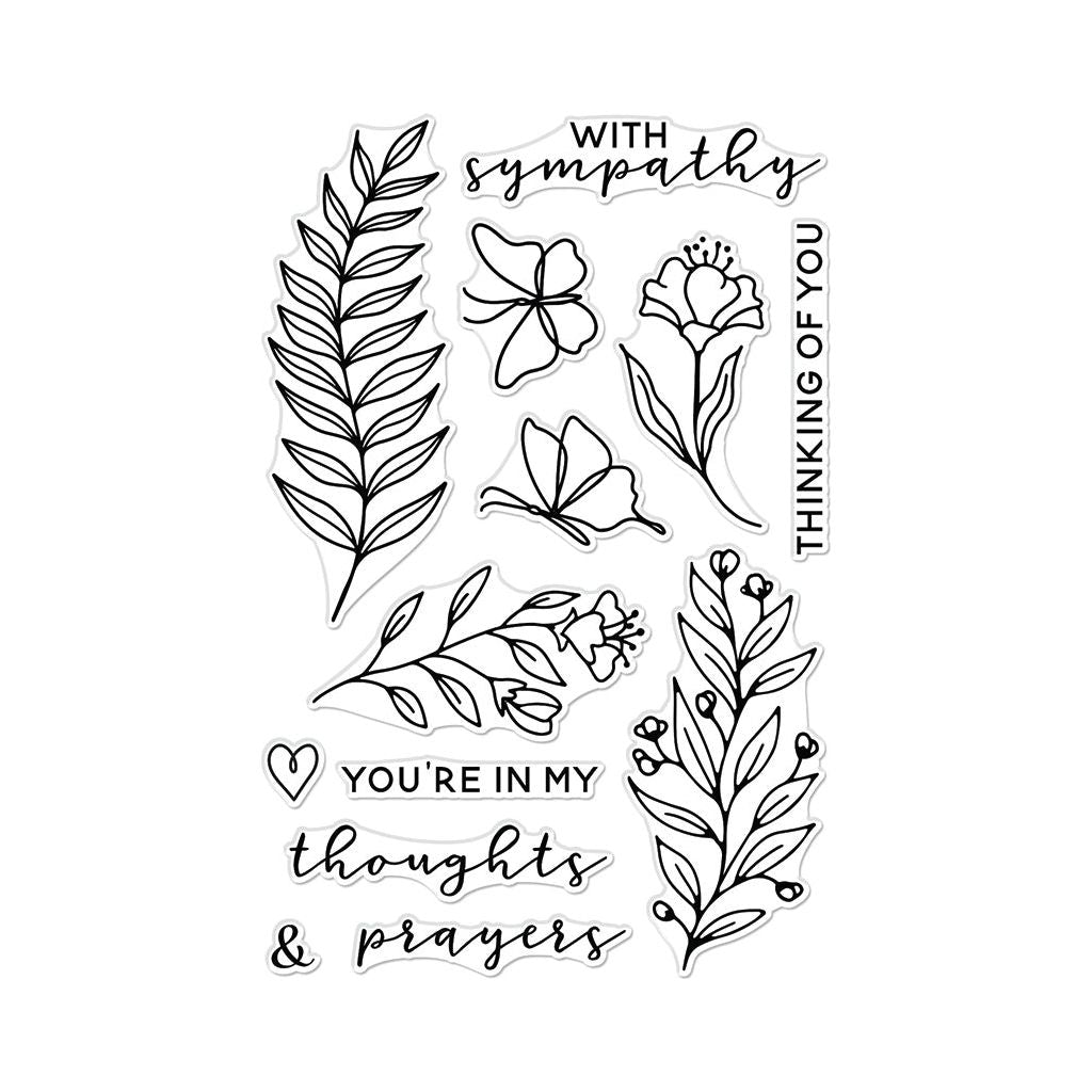 The Hero Arts Clear Stamps With Sympathy set boasts top-quality 4 x 6 inch clear stamp sets renowned for their excellence. Crafted in the USA from genuine photopolymer, these stamps are non-toxic, biodegradable, and ensure flawless ink transfer for a true impression every time. Simply peel the stamp from its backing and adhere it to an acrylic block for easy positioning. Mix and match the designs to create personalized compositions. Cleaning up is a breeze with water or stamp cleaner.