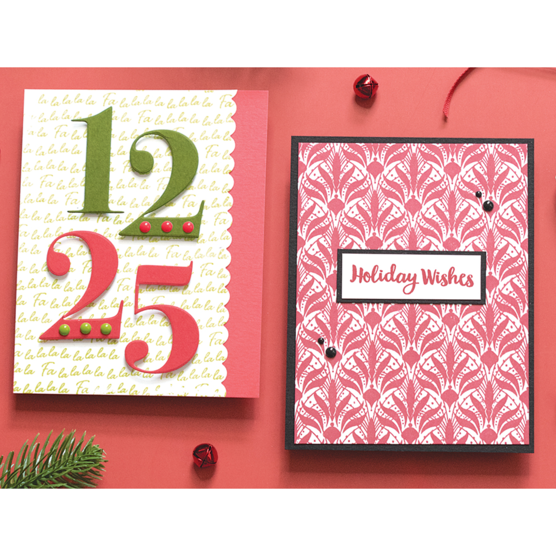 The Hero Arts Cling Stamp Falala Bold Prints with the product code cg914 showcases a beautifully crafted script background adorned with the festive phrase "falala," making it perfect for holiday-themed cardmaking and crafting endeavors.