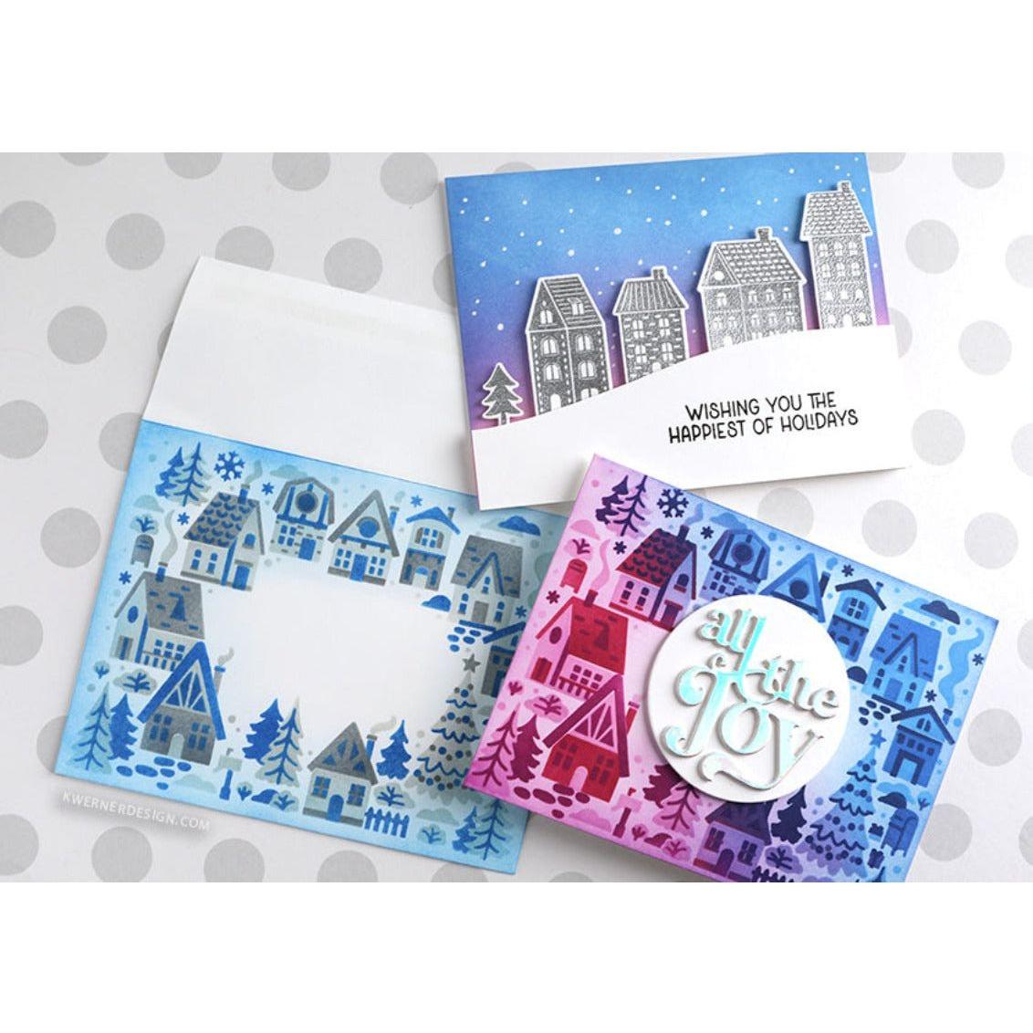 The Hero Arts Color Layering Holiday Neighborhood Stencils are versatile crafting tools that measure 5.25 x 6.5 inches. Crafted from thick frosted mylar, these stencils are durable and well-suited for various creative projects. You can use tools like a paintbrush, ink pad, dauber, or spray to transfer the intricate neighborhood designs onto your preferred artistic medium. These stencils are proudly made in the USA, providing you with a high-quality option to add charming holiday-themed neighborhood designs to your creative endeavors.