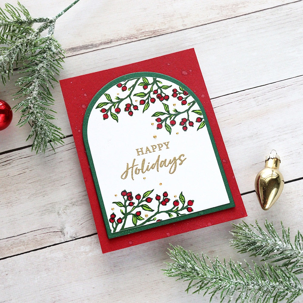 Introducing the Hero Arts Color Layering Holly Branch Clear Stamp and Die Set, perfect for adding a festive touch to your holiday projects. This 4x6-inch set includes beautifully designed stamps and coordinating Frame Cuts that effortlessly layer to create stunning holly branch images. Featuring six Christmas-themed sentiments, this set allows you to craft personalized, heartwarming cards and decorations. Sentiments include,