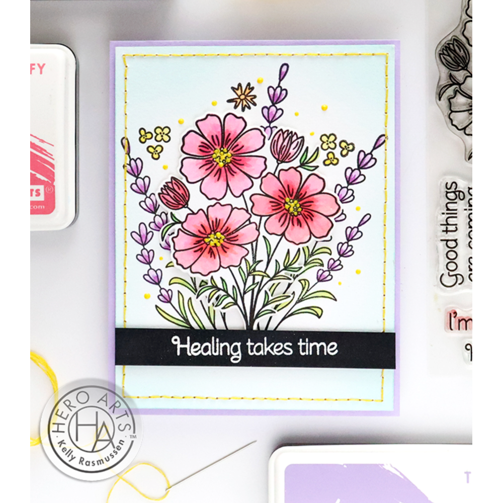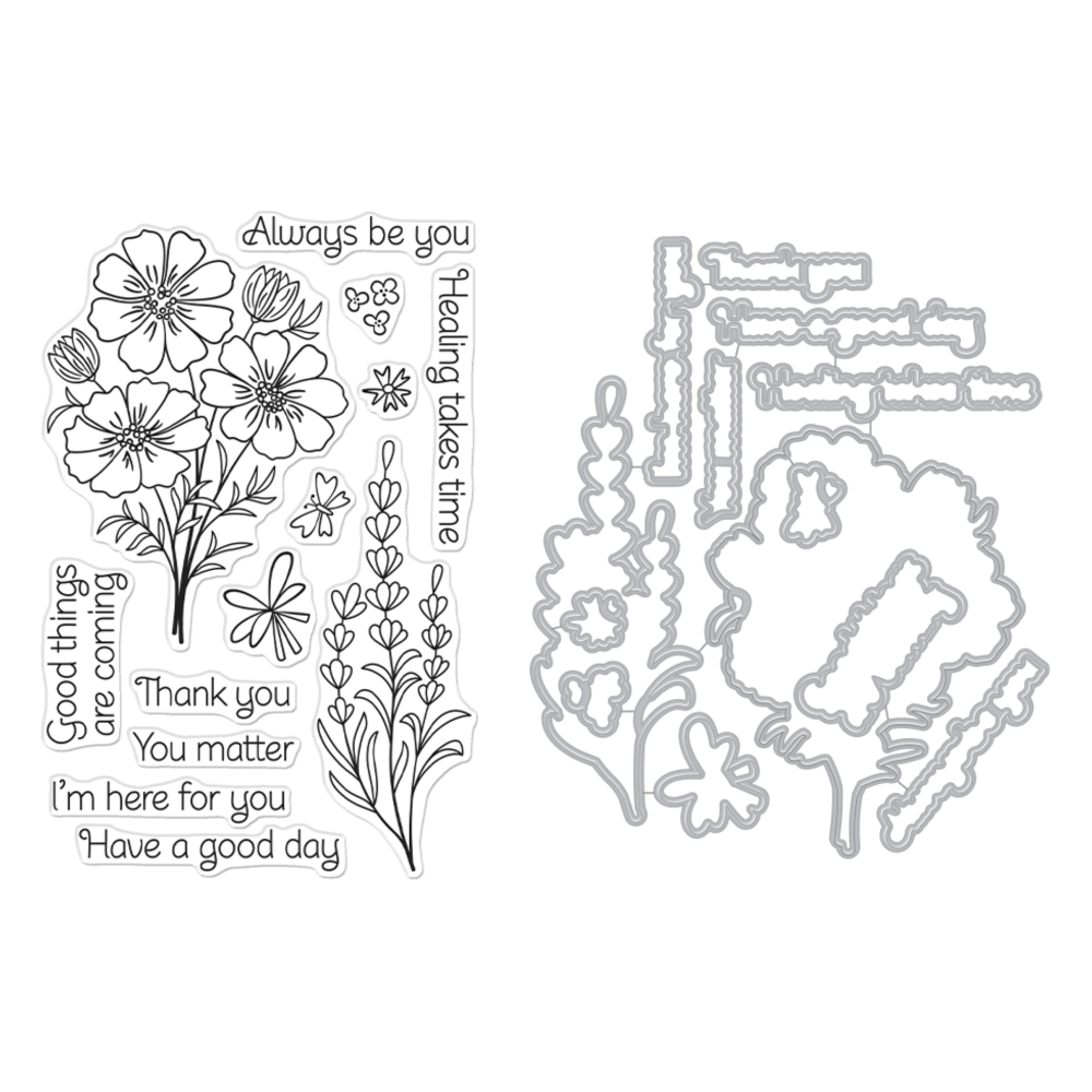 Hero Arts Cosmos and Lavender Clear Stamp and Die Set sb399*