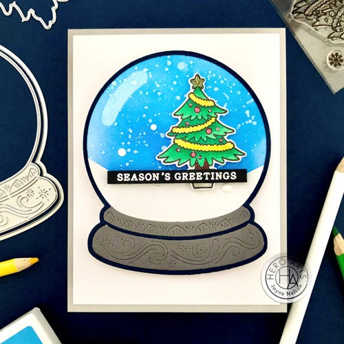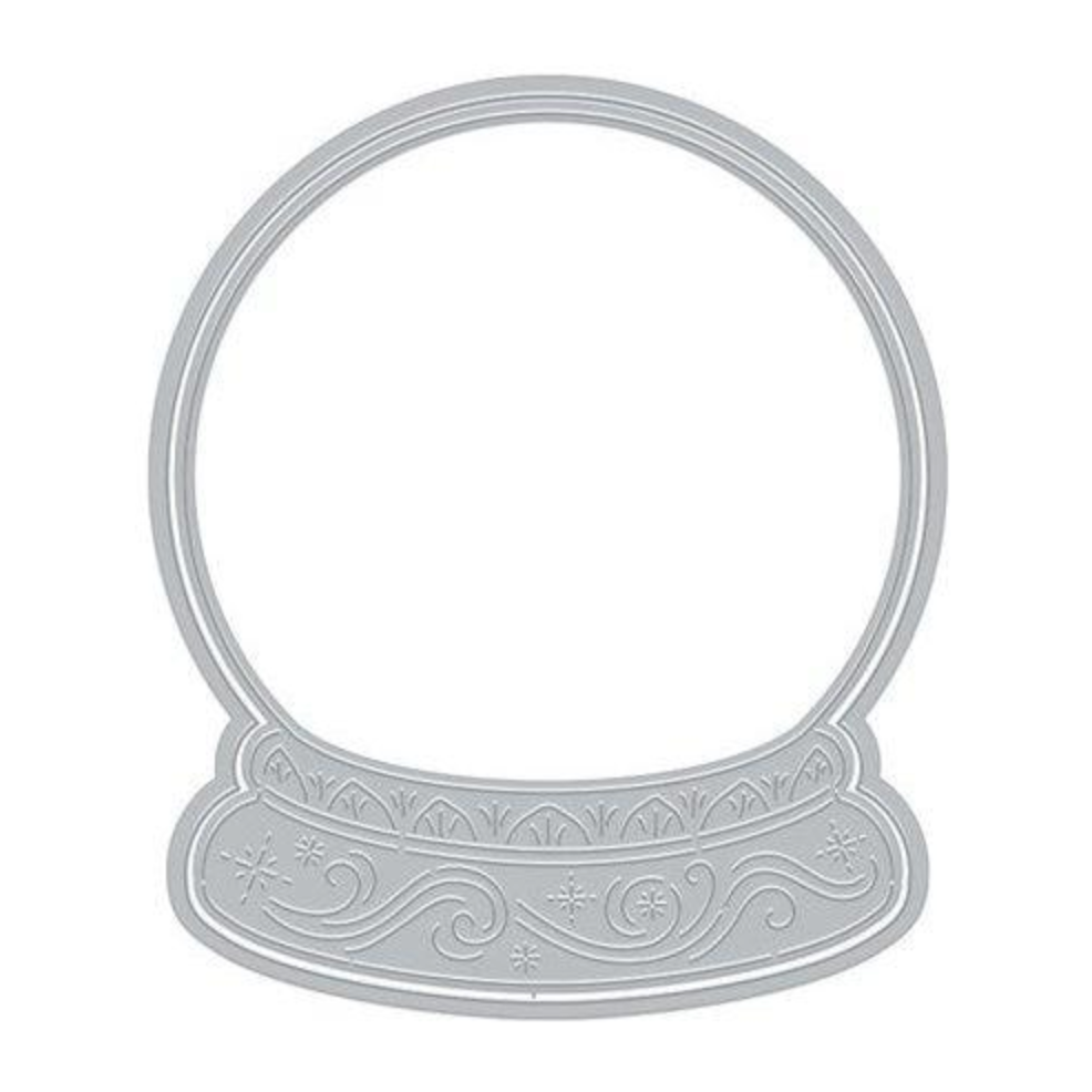Stamp a snowy scene within the dome of this snow globe with sits atop a beautifully ornate base. This two-piece die set allows you to die cut a standalone snow globe, or use only the inner portion to cut the globe directly into your card panel, perfect for shaker cards!