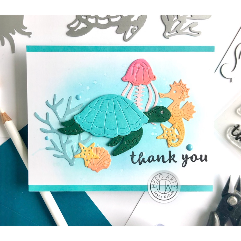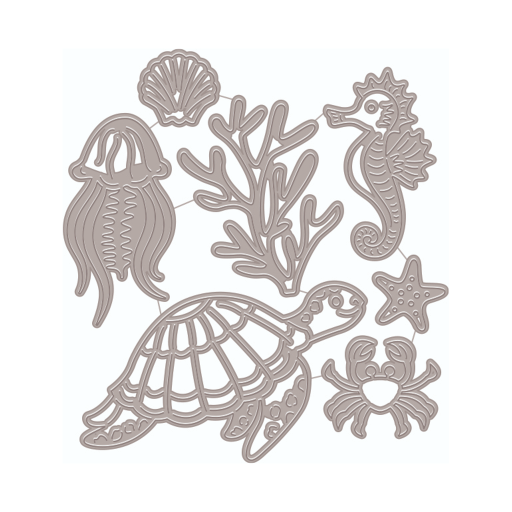 The Hero Arts Fancy Cuts Dies Sea Creatures set is perfect for bringing the charming inhabitants of the sea to your next project. This set includes a delightful assortment of dies featuring a crab, jellyfish, coral, sea turtle, seahorse, shell, and starfish.