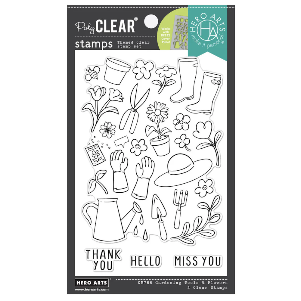 Hero Arts Gardening Tools & Flowers Clear Stamp Set cm788*