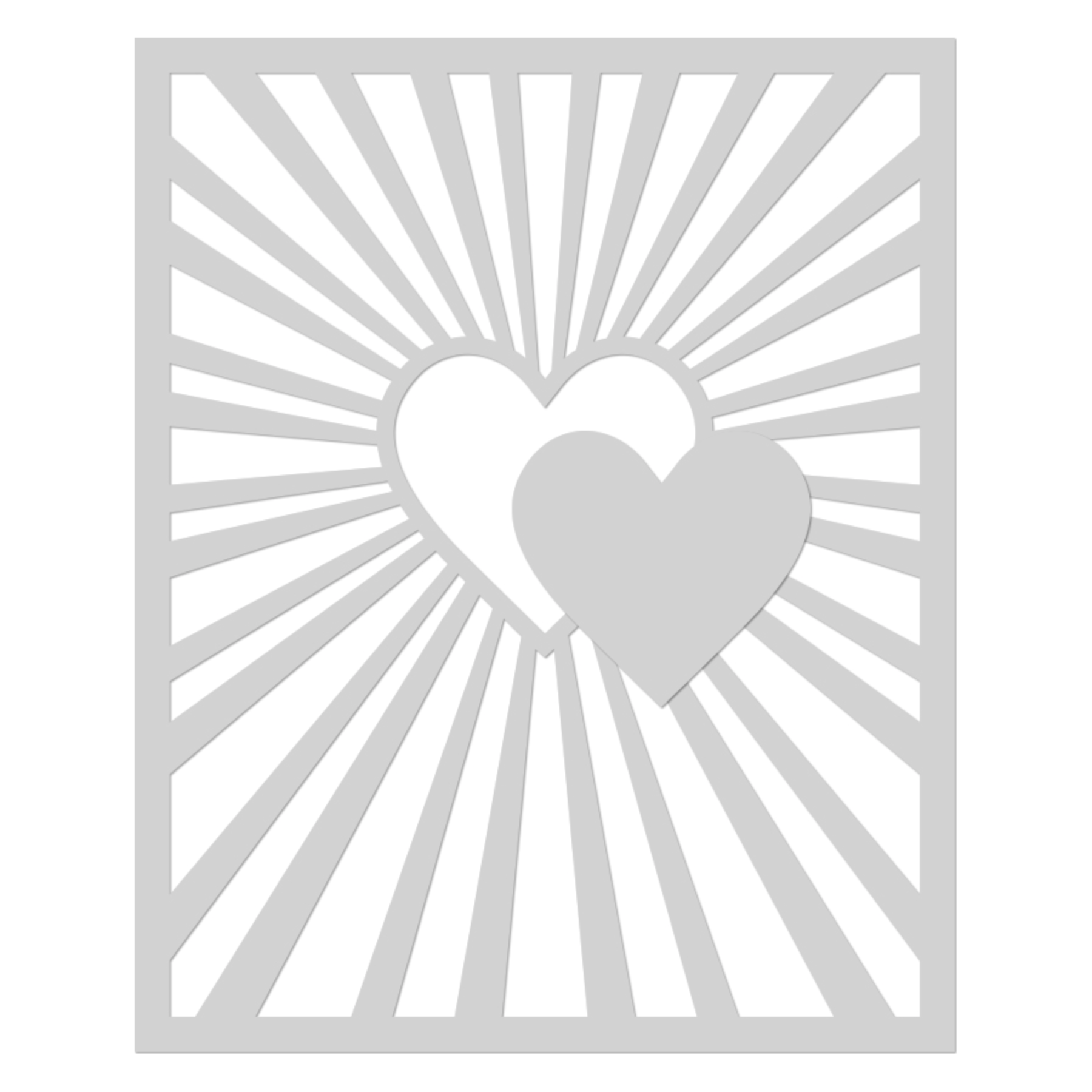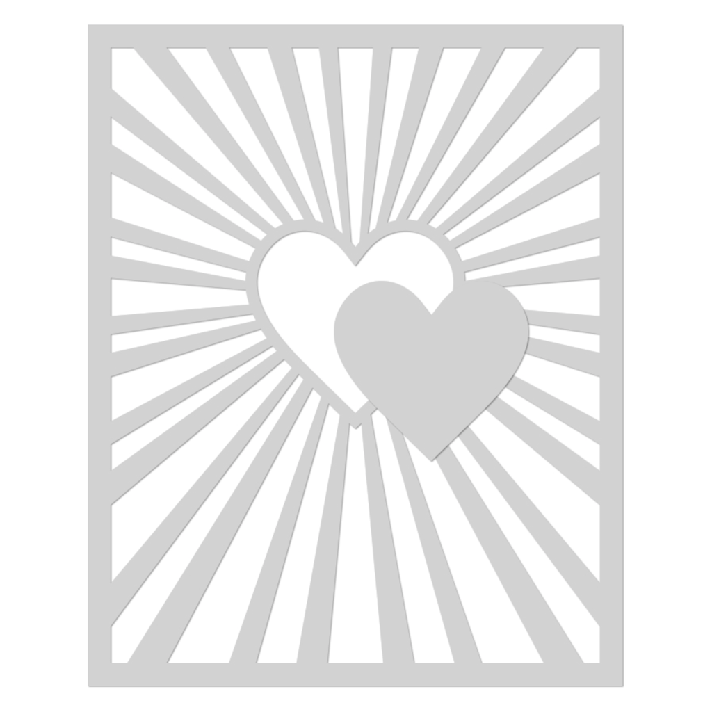 The Hero Arts Heart Burst Stencil, measuring 5.25 x 6.5 inches, is crafted from thick frosted mylar. You can easily transfer the intricate design onto your preferred medium using a paintbrush, ink pad, dauber, or spray. This stencil is proudly made in the USA, ensuring quality craftsmanship. This stencil features a large heart in the middle with radiating lines going off of it.