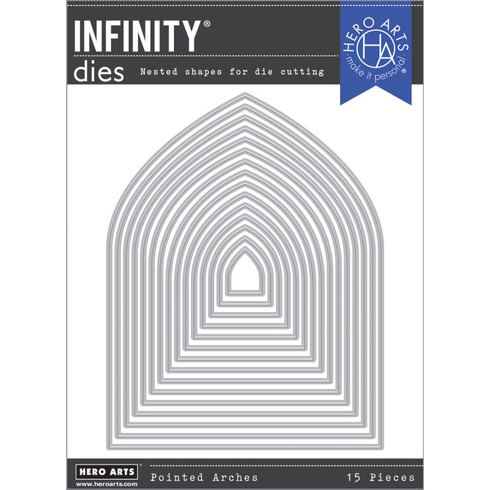 The Hero Arts Infinity Dies Pointed Arches are a set of nesting dies made from solid metal construction with a sharp and durable cutting edge. These dies are ideally designed to work with a wide range of papers and other thin materials, making them versatile tools for your crafting projects.