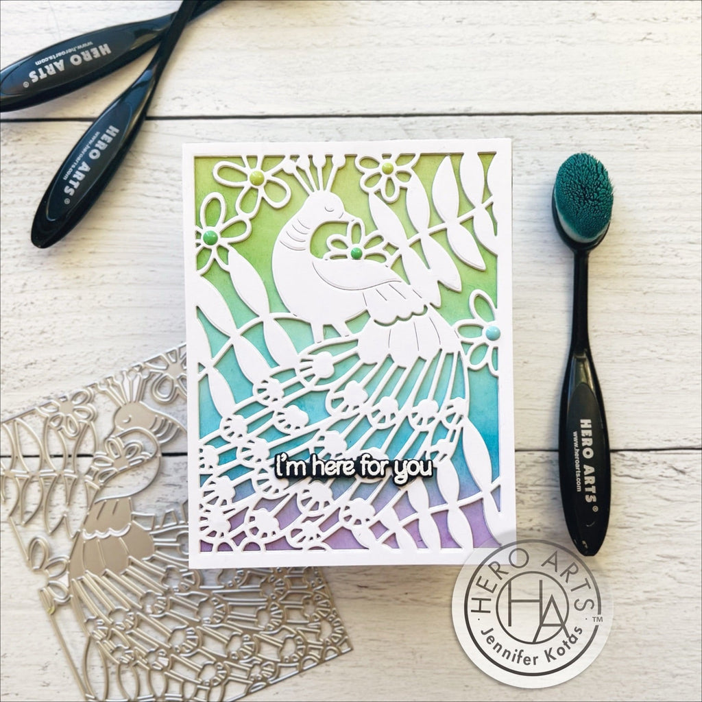 The Hero Arts Peacock Cover Plate Die is a stand-alone design that creates intricately detailed cut-outs on paper. These Fancy Dies by Hero Arts are reminiscent of their stamp designs but are intended to complement stamps rather than matching them. This allows you to expand your stamping and crafting techniques. The dies are crafted from sturdy metal, featuring intricate cutting surfaces. They are compatible with most die-cutting machines and work seamlessly with the entire Hero Arts range of stamps and papers, providing you with a wide array of creative possibilities for your crafting projects.