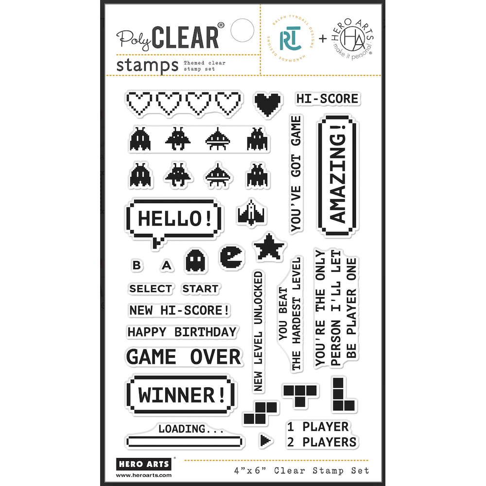 The Hero Arts Retro Game Clear Stamp Set includes 17 fun, nostalgic sentiments perfect for the video game lover in your life. Sentiments include,