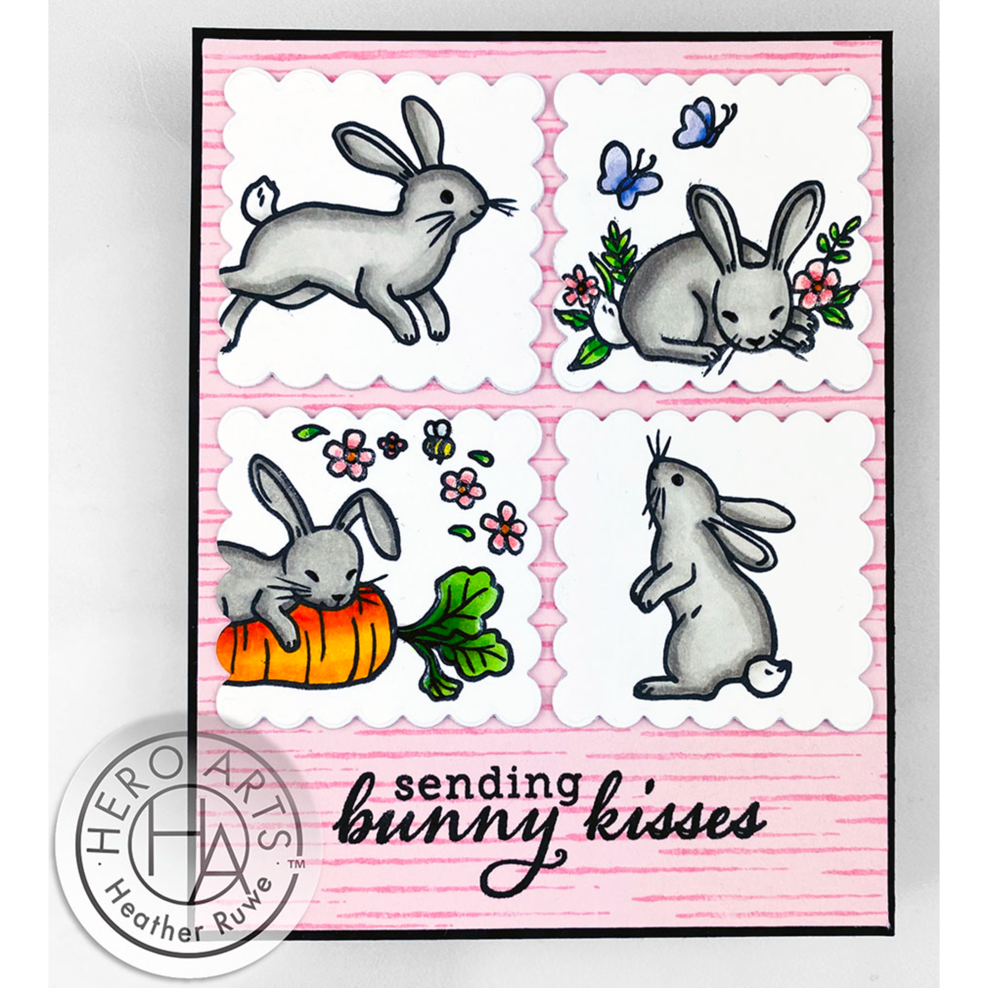 The "Hero Arts Spring Bunny Clear Stamp and Die Set" is a delightful combo that pairs clear stamps with matching frame cuts, designed to work seamlessly together for your stamping creativity. This combo includes both the 4x6 inch cm742 Spring Bunny clear stamp set and the coordinating dies, providing you with a complete set for your crafting needs.