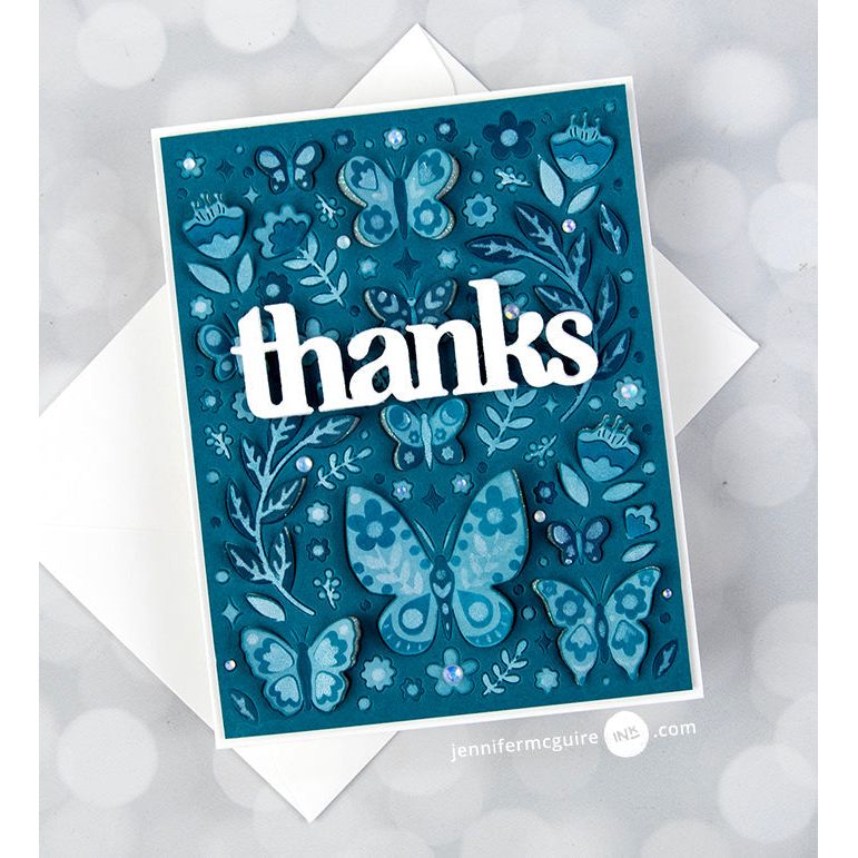 Included is a 4x6 inch clear stamp set and coordinating die.