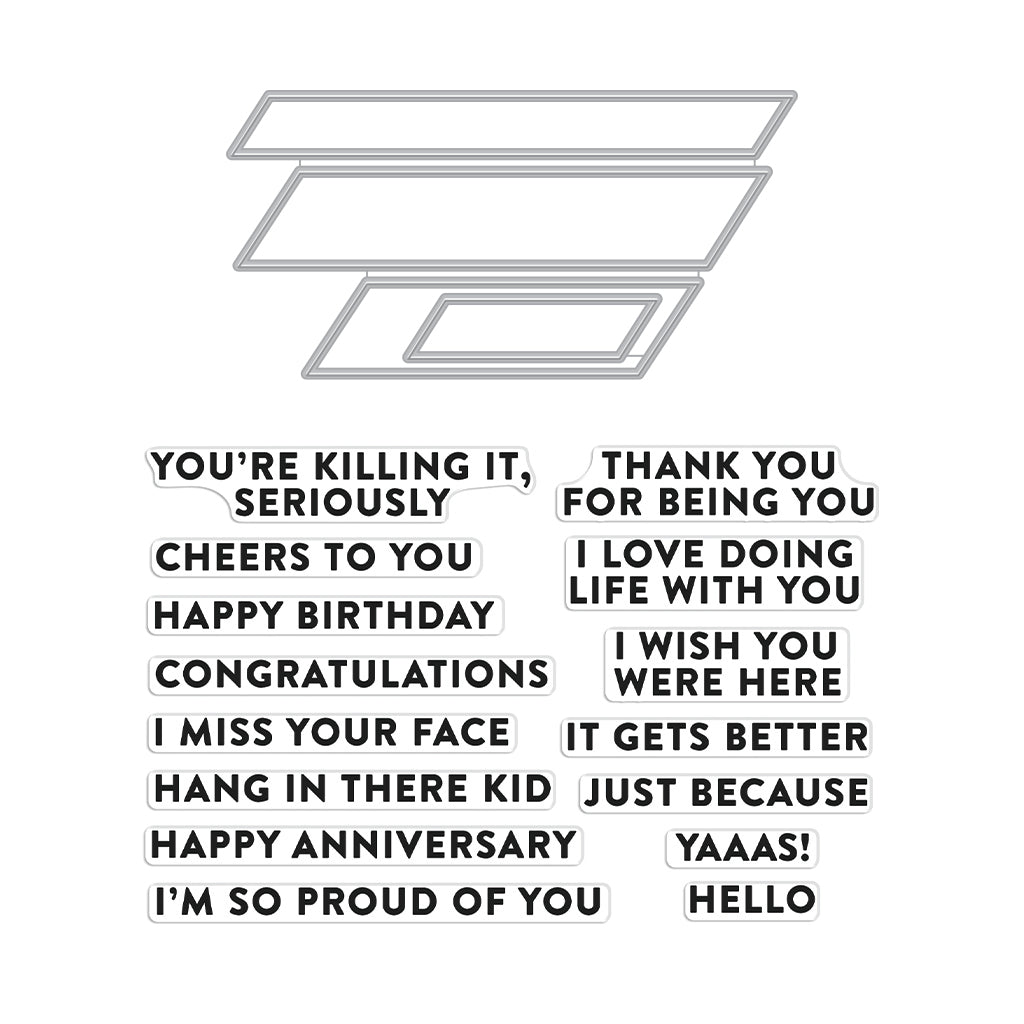 The Hero Arts Stamp and Cuts XL Ralph Tyndall Essential Messages set provides you with the tools to add creativity, dimension, and style to your cardmaking endeavors. Explore various techniques and unleash your crafting imagination with this versatile set.