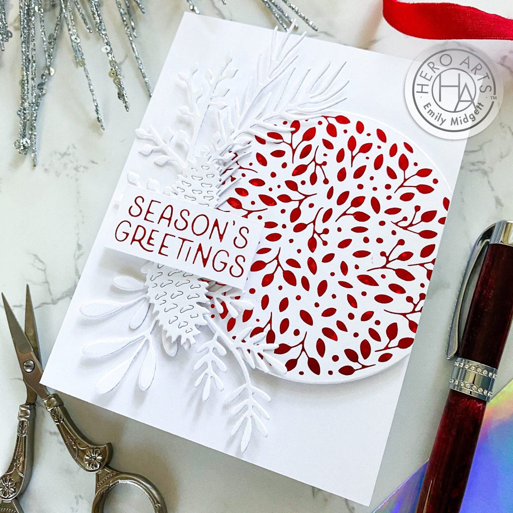 Elevate your creative projects with the Hero Arts Three Holiday Messages Hot Foil Plates. These plates offer a captivating infusion of dramatic metallic shine to any card or mixed media endeavor. Designed by Hero Arts, they stand as a versatile tool for both foiling and letterpress-style deboss techniques, enabling you to explore a realm of artistic possibilities.