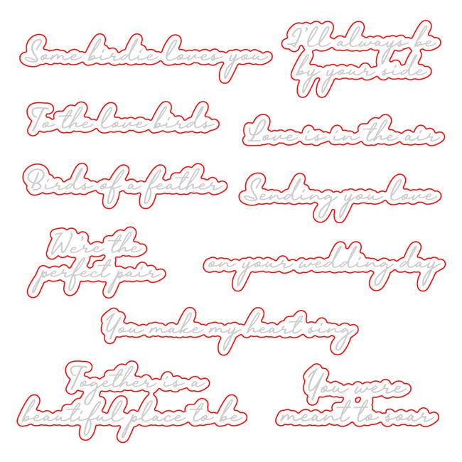 This die package includes 11 steel craft dies that have been pre-clipped for added convenience. The dies are made of high-quality, 100% steel material and are compatible with most die-cutting machines available in the market. Please note that the coordinating stamp set (hbst-525, sold separately) can be cut around using this die set. The images of the stamps are shown in light gray for reference purposes only.