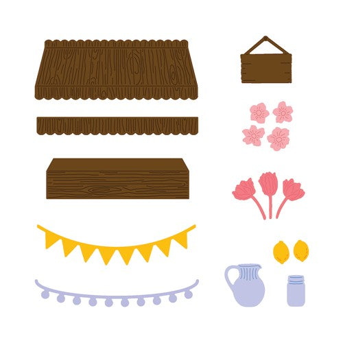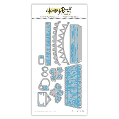 Honey Cuts Package contains 11 steel craft dies. Dark grey lines indicate the cutting lines. Light grey background indicates individual metal dies. Blue lines are embossed details. Dies are pre-clipped!! Honey Cuts... custom craft dies, made of high-quality finished 100 percent steel.