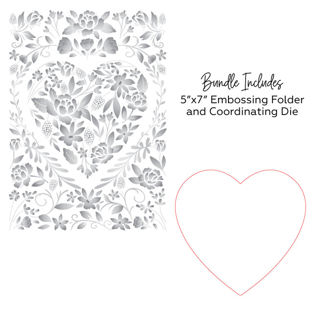 Create stunning 3D embossed designs with the Honey Bee Floral Heart 3D Embossing Folder. This folder features a unique 3-dimensional molding process, resulting in beautiful highs and lows that add depth and dimension to your projects. Compatible with any die-cutting or embossing machine, and includes a coordinating die for cutting out the center heart. Folder size is 5 inches wide x 7 inches tall.