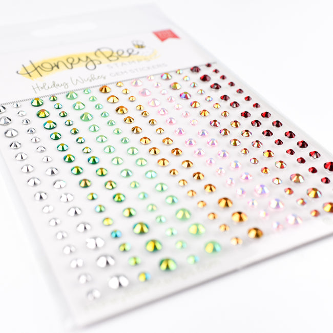 Introducing the Honey Bee Holiday Wishes Gem Stickers - the ultimate touch of glamour! Elevate your next handmade card or paper craft project with these exquisite adhesive gems that bring a touch of sparkle and brilliance to your creations.