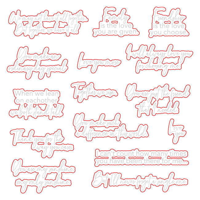 This package includes 15 steel craft dies. Designed to be used with the coordinating stamp set (hbst-527, available for purchase separately). Dies are pre-clipped for convenience. Stamp images are showcased in light gray as a reference, with the stamp set sold separately. Constructed from premium 100 percent steel material, ensuring high quality. Compatible with the majority of die-cutting machines currently available on the market.