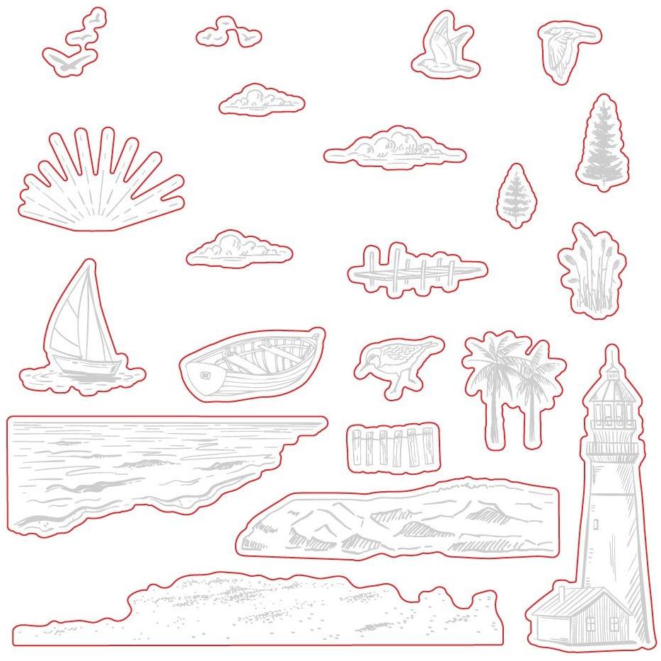 21 steel craft dies thoughtfully made in the USA with love and care, along with a 6x6 inch clear stamp set of the utmost quality photopolymer. The coordinating die set cuts around the stamped images, and even the stamps are pre-clipped for your convenience. Images are shown in a light gray for your reference. Made of top-notch, beautifully finished 100 percent steel. Compatible with the majority of die-cutting machines available now.