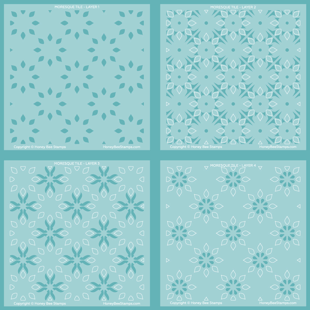 Elevate your papercraft projects with the Honey Bee Moresque Tiles Set of 4 Stencils. Each 6x6 inch stencil offers endless possibilities for creating your own distinctive backgrounds. Let your creativity run wild with spray mists, inks, paints, and more to add stunning depth and texture to your designs. With four stencils in the set, the options are truly limitless.