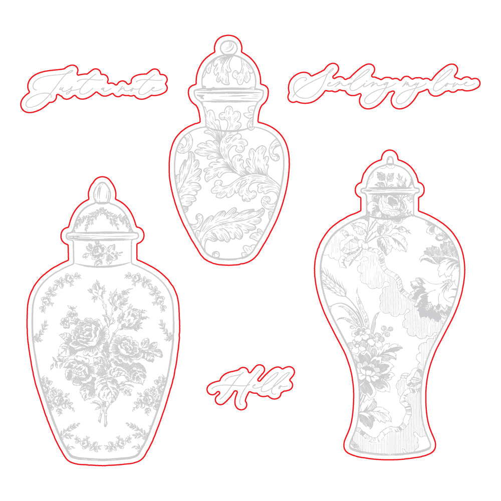 Discover the Honey Bee Ornate Ginger Jars Dies - a set of 6 steel craft dies that can be paired with the corresponding stamp set (hbst-645, available separately). These high-quality dies are expertly crafted from 100 percent steel and work seamlessly with most die-cutting machines on the market. Indulge in this luxurious and exclusive addition to your crafting collection.