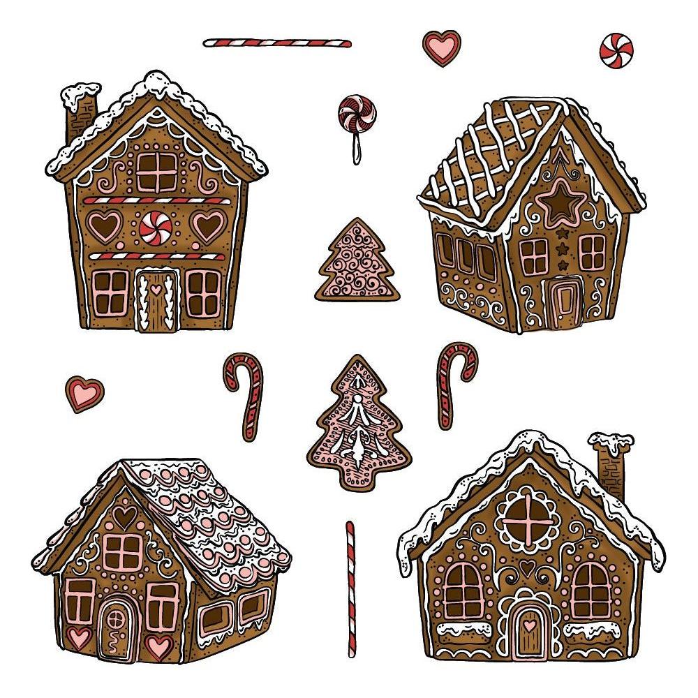 This set of 14 cling stamps, measuring 5 x 6 inches, allows you to craft a charming Peppermint Gingerbread Village. The included images feature lollipops, candy canes, hearts, and gingerbread houses. These stamps are meticulously designed and manufactured in the USA with top-quality pink rubber. Coordinating dies are also available separately (hbds-621).