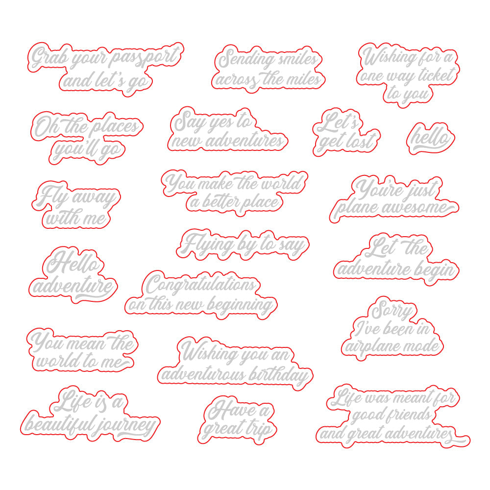 The included package features a set of 20 steel craft dies, with dark grey lines indicating the cutting lines and light blue lines indicating the embossed details. The dies, created to coordinate with the Plane Awesome stamp set (hbst-598, sold separately) are made of top-quality finished 100 percent steel and are compatible with the majority of die-cutting machines currently available on the market.