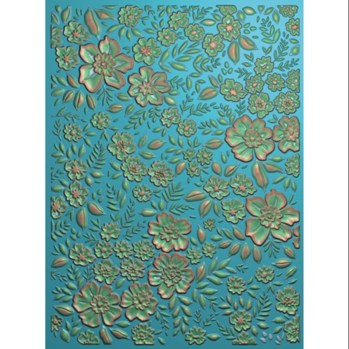 This embossing folder will achieve beautiful 3D effects due to its unique 3-dimensional molding process. Instead of having one depth within the folder, it will have a gently sloped effect to achieve different highs and lows that will be reflected in the technique.