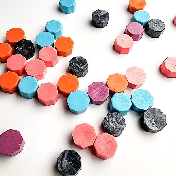 Enhance your paper crafting projects with Honeycomb Wax Melts, offering a timeless look and modern simplicity. Create a beautiful wax seal on envelopes, cards, or embellishments with Honey Bee Wax Stampers and Melting Spoon. Simply melt the wax beads in the spoon and use your favorite Wax Seal Stamp for a sophisticated touch. The resealable jar contains approximately 76 pieces, providing 30 grams of wax melts. Most customers find 3 to 4 melts to be the ideal amount. Choose from a variety of colors, including orange, blue, pink, purple, and black.