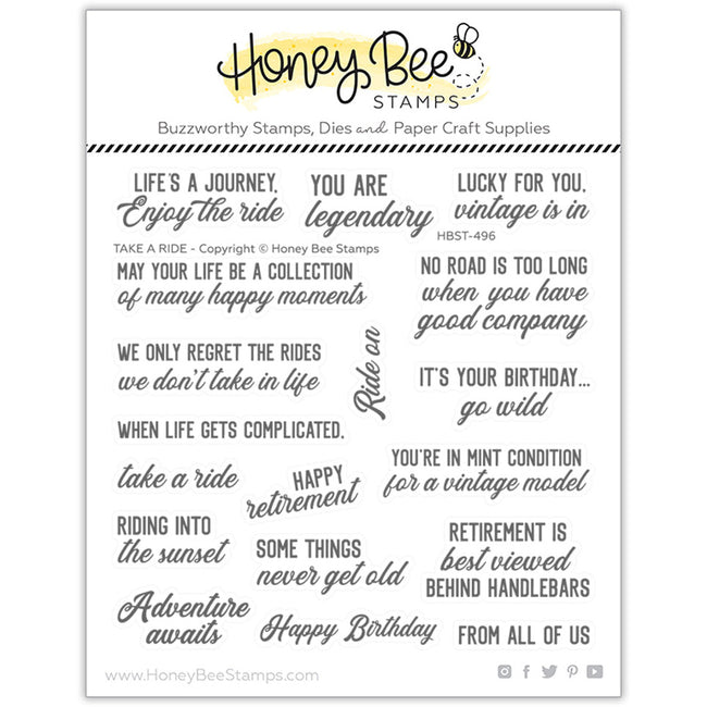 Whether you're a seasoned crafter or just beginning your creative journey, the Honey Bee Take A Ride Clear Stamp Set is a must-have addition to your collection. Let your imagination take flight as you create stunning cards, scrapbook pages, and other handmade crafts that are sure to bring joy to both the creator and recipient. With its exceptional quality and versatile designs, this stamp set is the perfect choice for all your paper crafting endeavors.