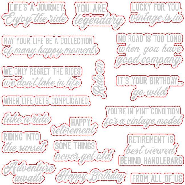 The dimensions of the Honey Bee Take A Ride Die Set are as follows: the 'Ride on' die measures approximately 1.265 inches in length and 0.53 inch in width, allowing you to add charming details to your projects. The sentiment die 'MAY YOUR LIFE BE A COLLECTION of many happy moments' measures approximately 3.14 inches in length and 0.78 inch in width, providing a bold and heartwarming message for your creations.
