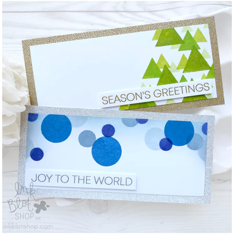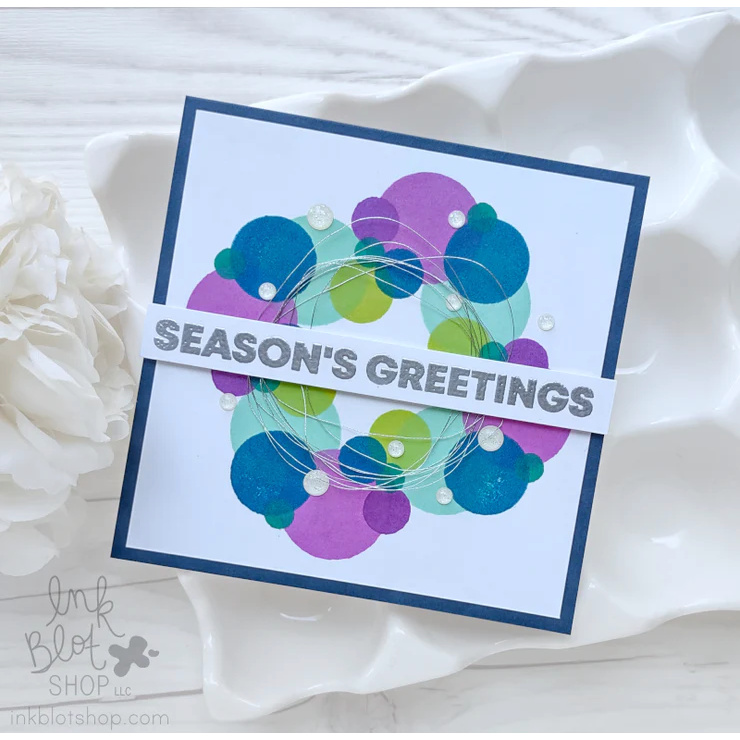 For size reference, the bold 'Season's Greetings' sentiment is approximately 4 x 0.25 inch and the thin 'Season's Greetings' sentiment is approximately 3.625 x 0.25 inch.