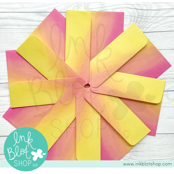 These A2 size envelopes feature a stunning ombre design in varying shades of pink, orange, and yellow. They add a touch of vibrant color to handmade greeting cards or invitations. Made from high-quality 70 lb. paper, the Warm Wind Envelopes have a square flap with rounded corners and a gummed closure. They are designed to fit 4.25 x 5.5 inches (A2) cards and are available in a pack of 10. This exclusive design is proudly made in America, though variations in the finished product and color may occur due to lighting and monitor settings. If you have questions about mailing requirements or potential surcharges, please contact your local post office.
