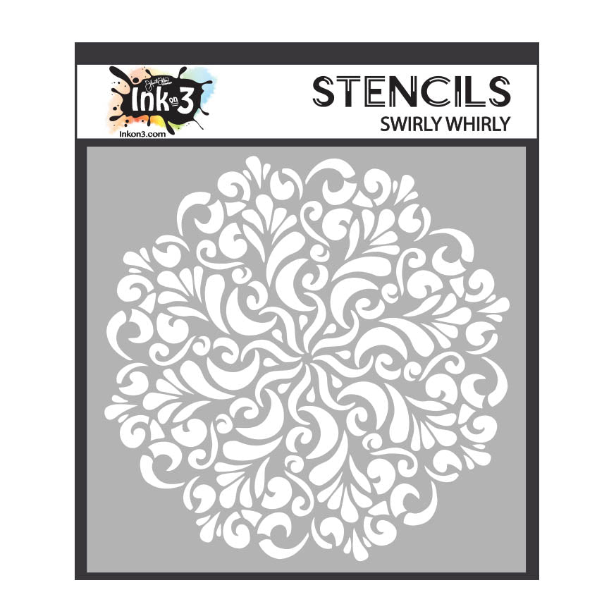 The Inkon3 Swirly Whirley Stencil is a versatile tool for your creative projects. This stencil can be used with a wide range of mediums, including inks, acrylic paint, latex paint, spray paint, raised paints, plaster, pastes, gels, etching mediums, markers, gouache, and more. It's even flexible enough for 3D projects. The stencil measures approximately 6 x 6 inches and features a beautiful design with flourishes placed next to each other to create a large circle or flower pattern. This intricate and versatile stencil allows you to add stunning flourishes and patterns to your artwork.