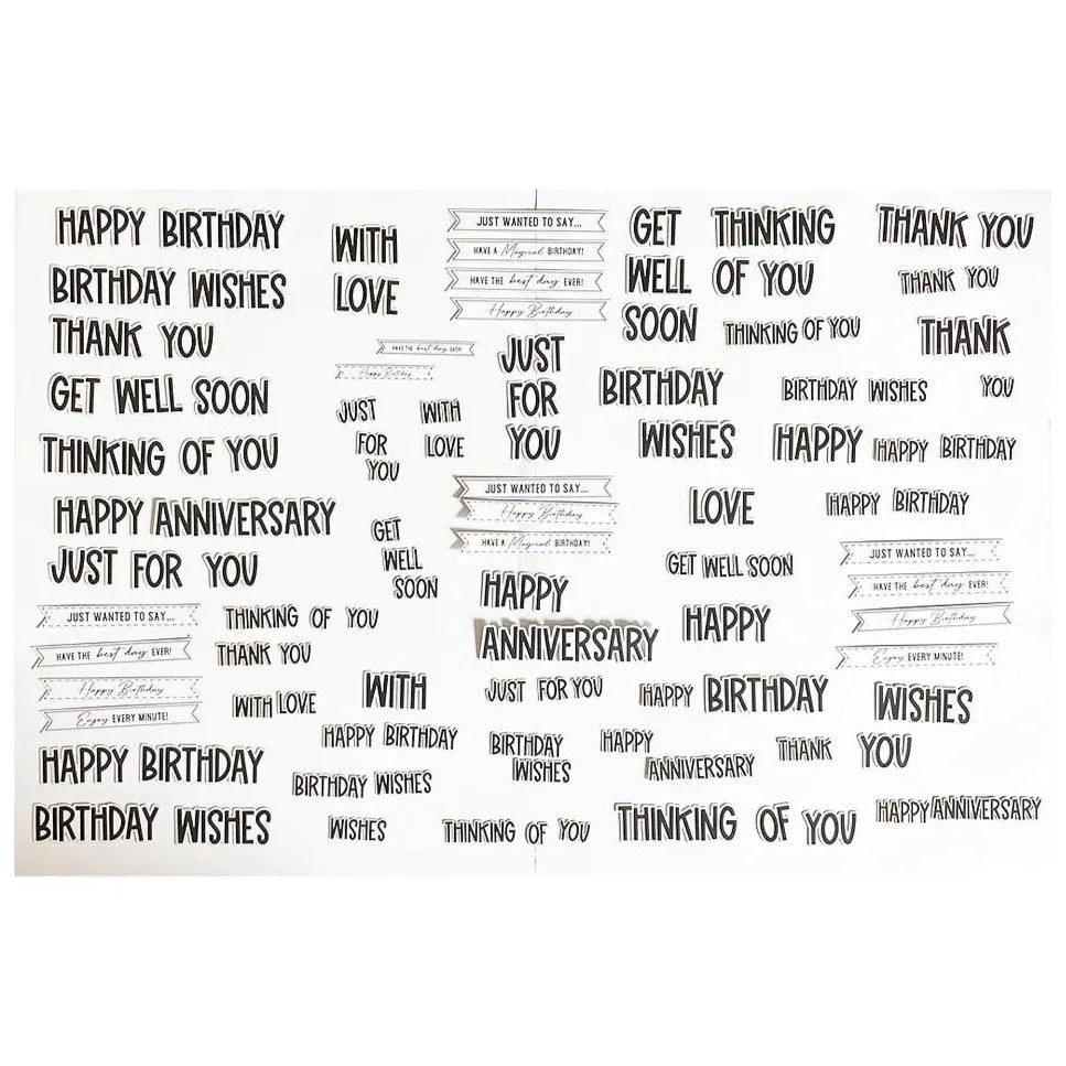 A beautiful collection of Julie's hand picked fonts, 115 die cut Assorted Sentinments in a variety of different fonts and sizes. This product has been created using a toner printer and can be foiled using a toner foil through a laminator, or using an iron, or heat foiling machine.