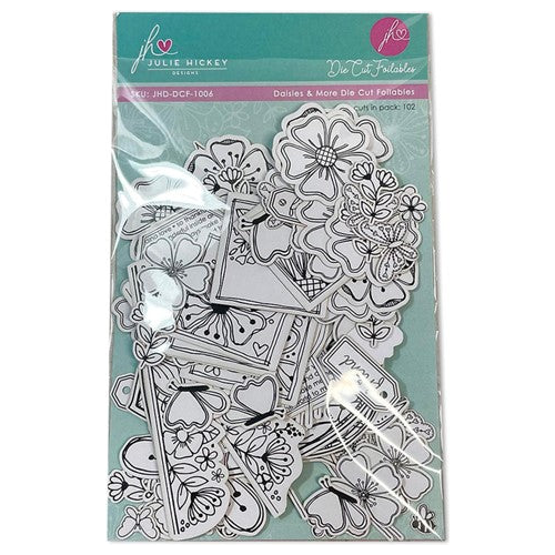 A beautiful collection of Julie's hand illustrations, 102 die cut daisies in assorted designs and sizes with leaves, hearts and frames. This product has been created using a toner printer and can be foiled using a toner foil through a laminator, or using an iron, or heat foiling machine.