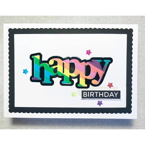 HAPPY Word Die with Shadow Outline Die to match. Perfect for both Christmas and birthday cards. The font is ideal for both male and female cards for all ages.