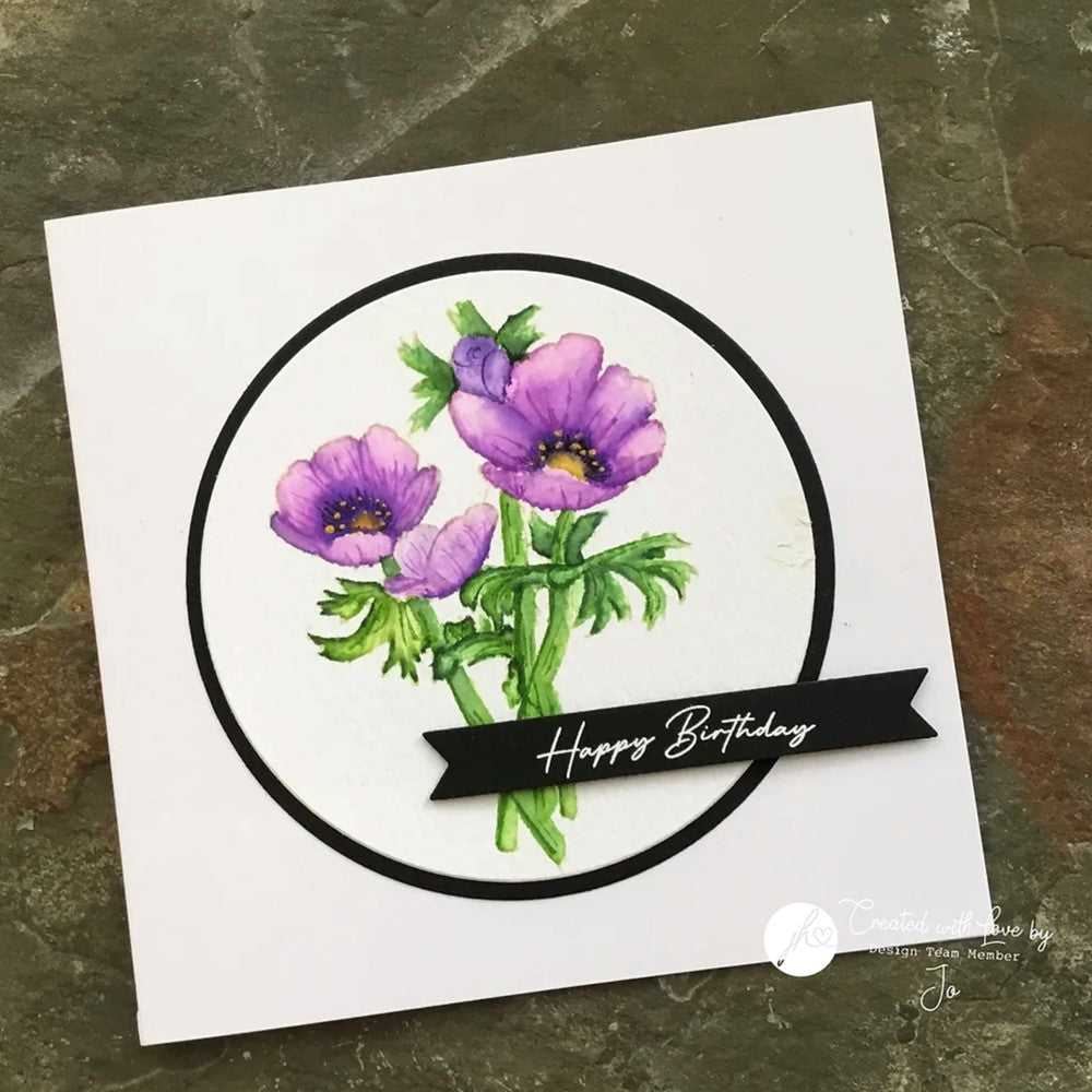 Add a touch of elegance and beauty to your cards with the Hand Painted Spring Florals Anemones stamp set by Peter Tofalos. This pack includes 7 individual stamps, comprising beautiful hand-illustrated Anemone flowers, along with 2 individual designs featuring 3 additional flower heads, all hand-drawn by Peter himself.