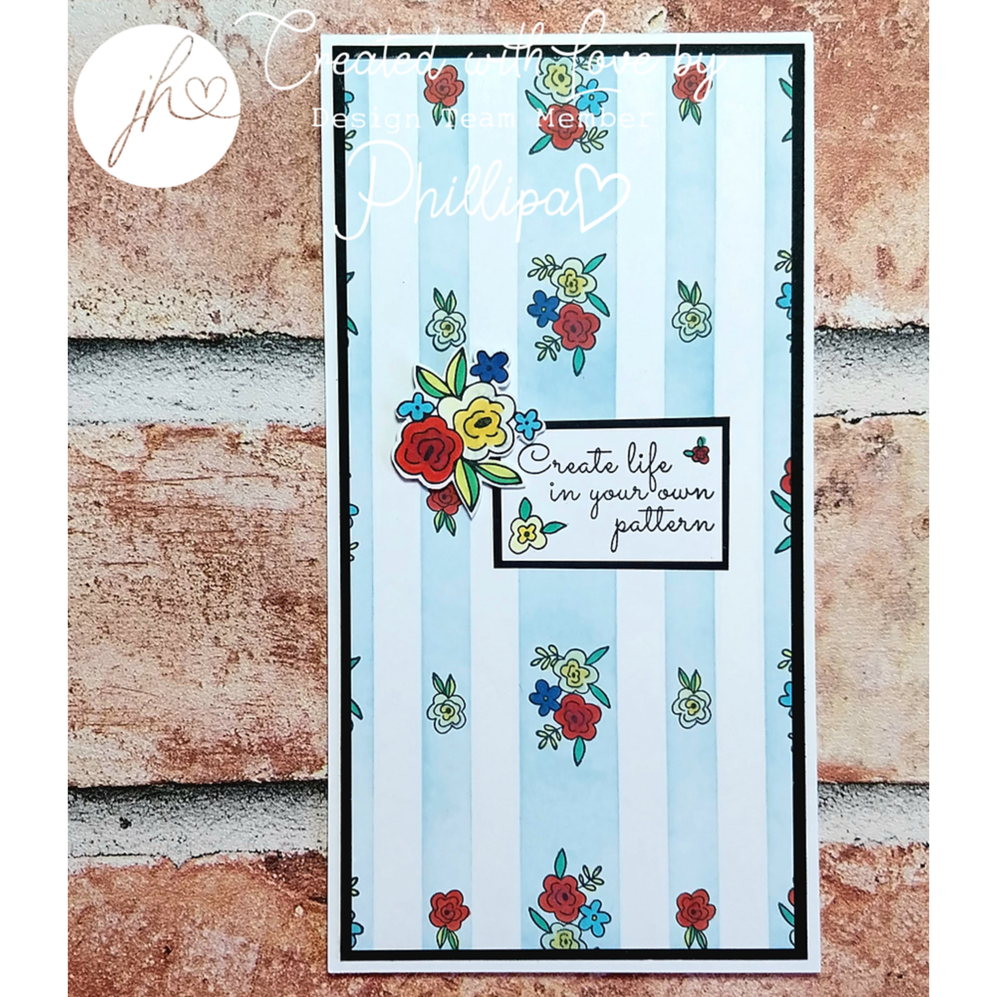 Designed with love, this collection by Phillipa carries a delightful retro charm. From charming ditsy flowers to bold patterns such as stripes, stars, and polka dots, her first collection offers a range of design options. Combining seamlessly with her three stamp sets and two stencil sets, this collection allows you to effortlessly create stunning cards and projects.
