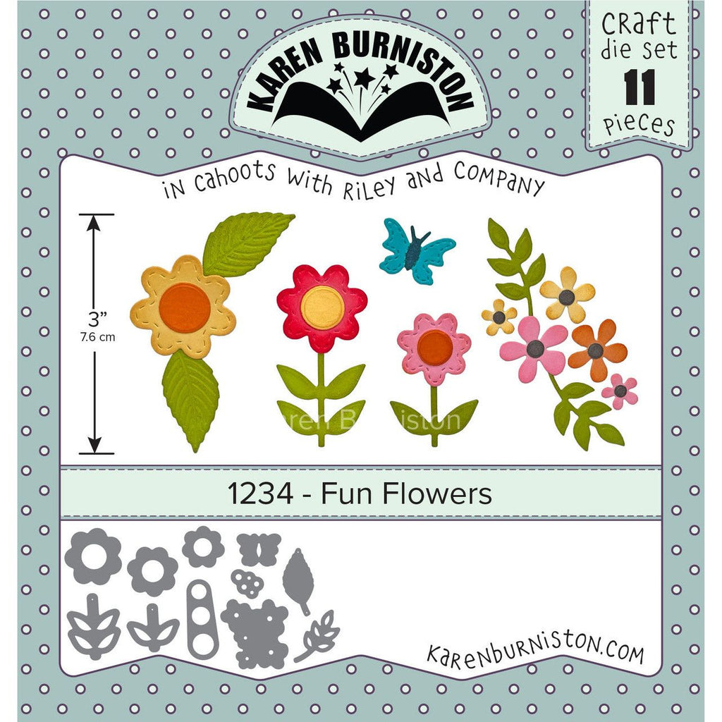 The Karen Burniston Fun Flowers Dies are an excellent addition to your paper crafting supplies. These wafer-thin metal crafting dies are designed to be compatible with most major die cutting machines, ensuring easy integration into your creative projects.