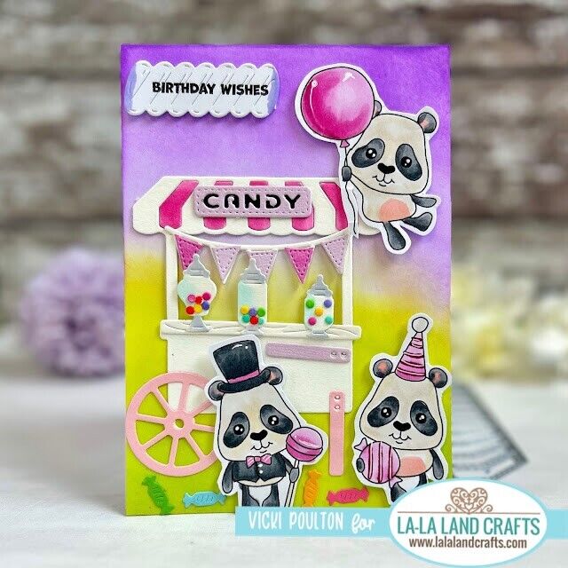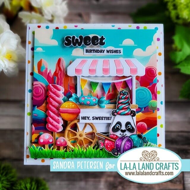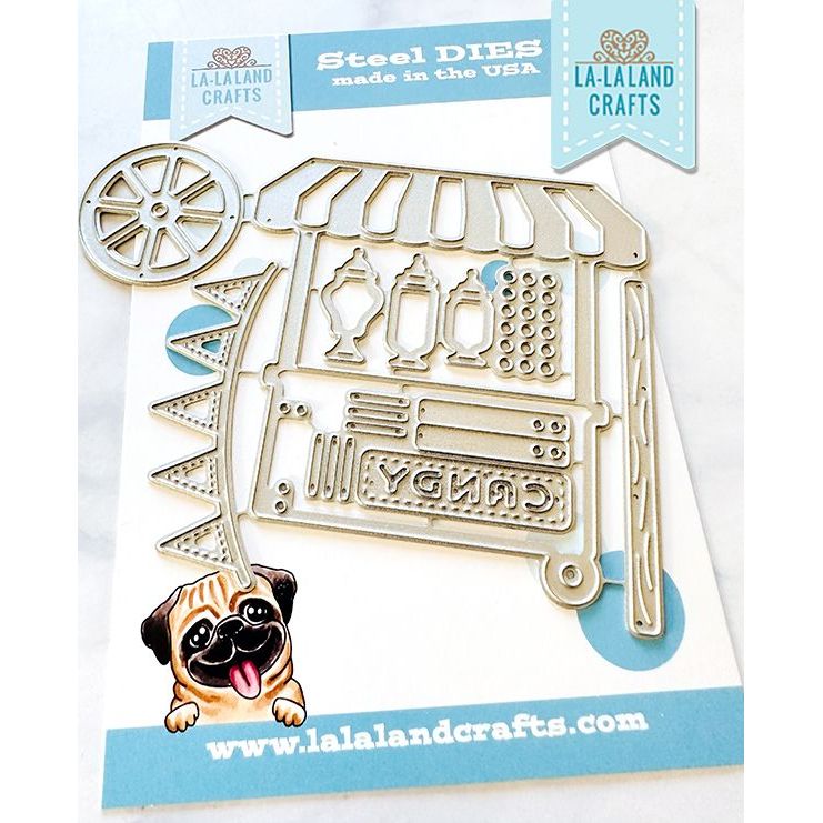 The La-La Land Crafts Candy Cart Dies offer a collection of 6 dies, including a charming cart measuring approximately 2.5 x 3 inches. This versatile set features everything you need for creating delightful sweet-themed cards, including jars, sweets, signs, wheels, and a triangle banner. With these elements, you can construct your very own sweet scene.