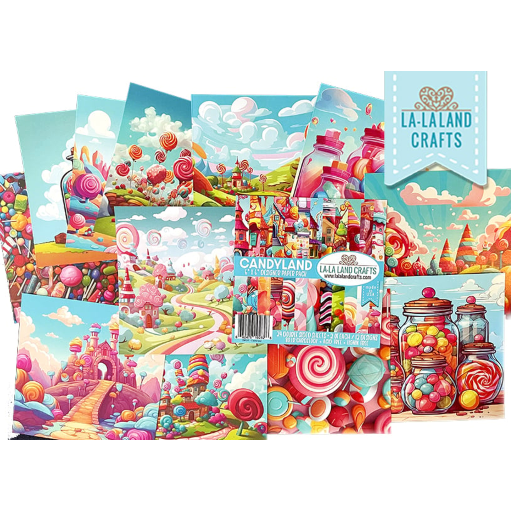 Discover the La-La Land Crafts Candyland 6 x 6 inch Paper Pack, a vibrant and lively addition to your creative arsenal. Ideal for sweet-themed projects, this paper pad boasts a delightful blend of bright and colorful designs. From almost cartoon-like background scenes to various patterns, this paper pack offers a world of creative possibilities.